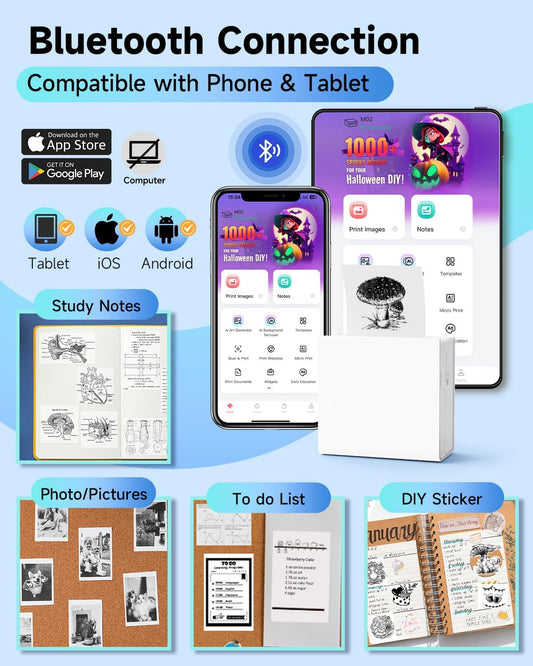 M02 Sticker Printer Machine - Print Pods Mini Printer, Mini Thermal Printer for Pad&Phone, Inkless Bluetooth Printer Wireless, Sticker Maker Machine Printer for Diy,Study Notes,Photo